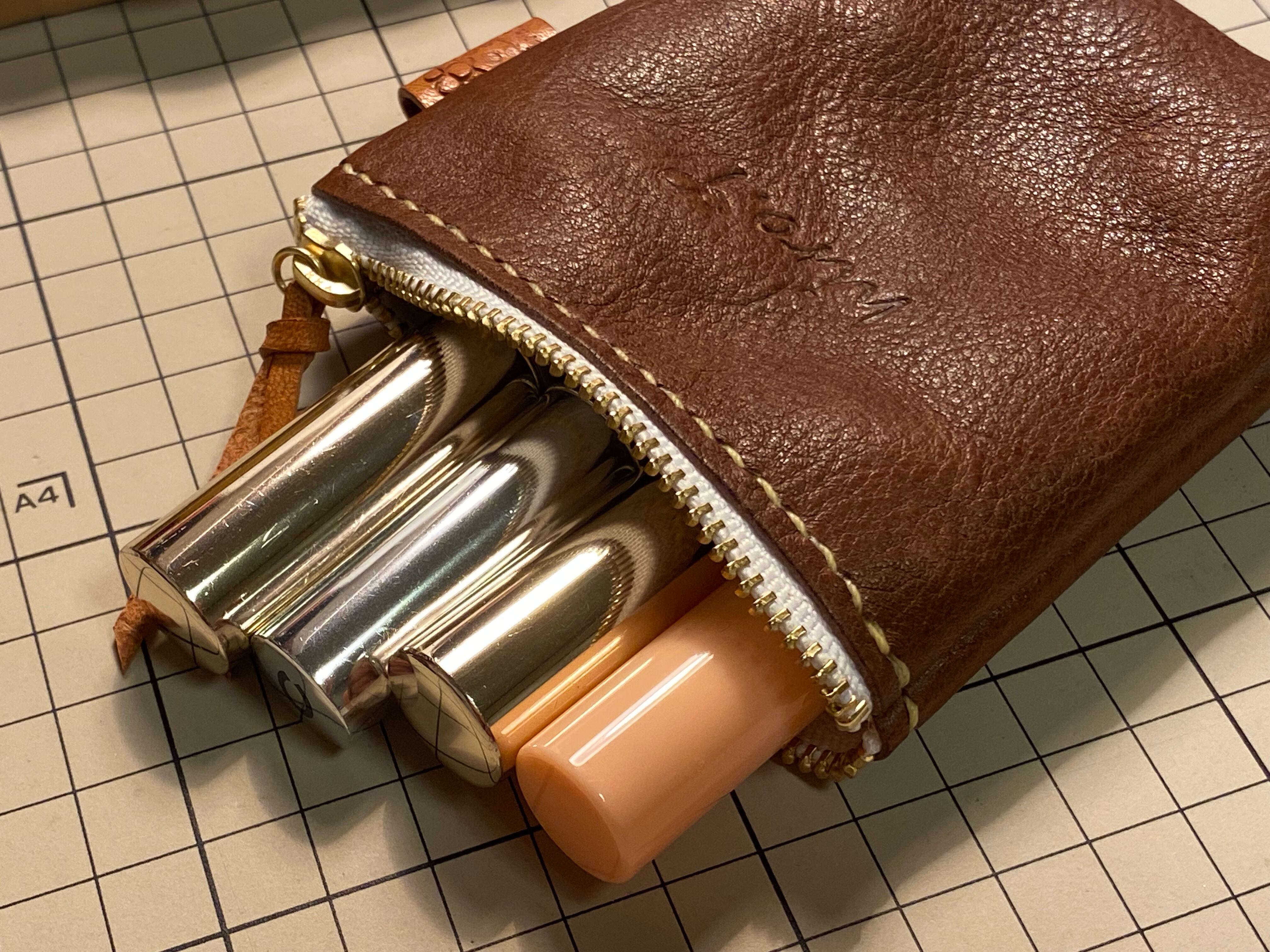 栃木レザーシュリンクレザーを使用した、シンプルなミニポーチです。小さめながらも、イヤホンやリップなどを入れてバッグに入れて持ち運びがしやすいサイズです。
