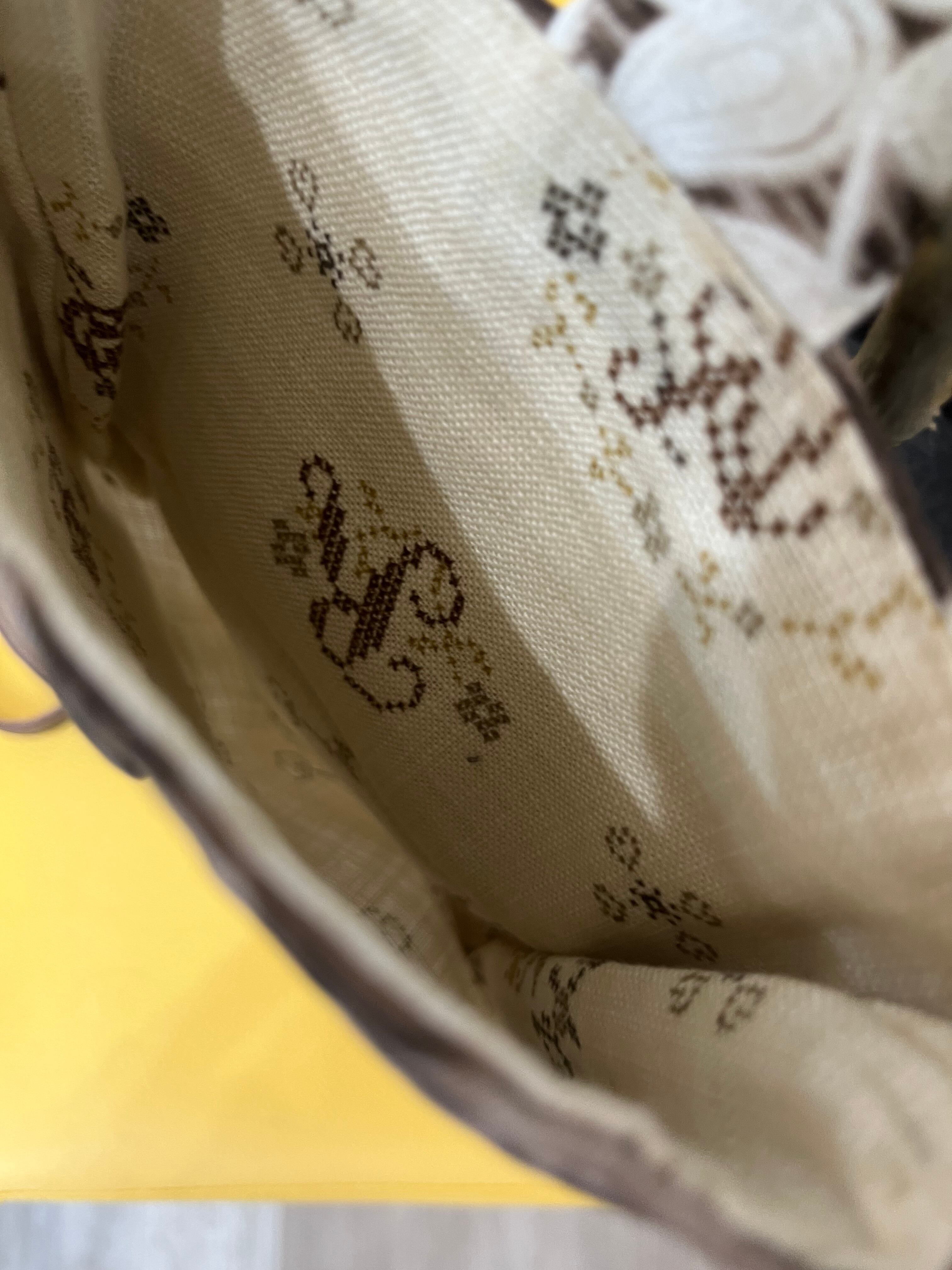 裏地も刺繍柄で、長財布もそのまま入ります。
