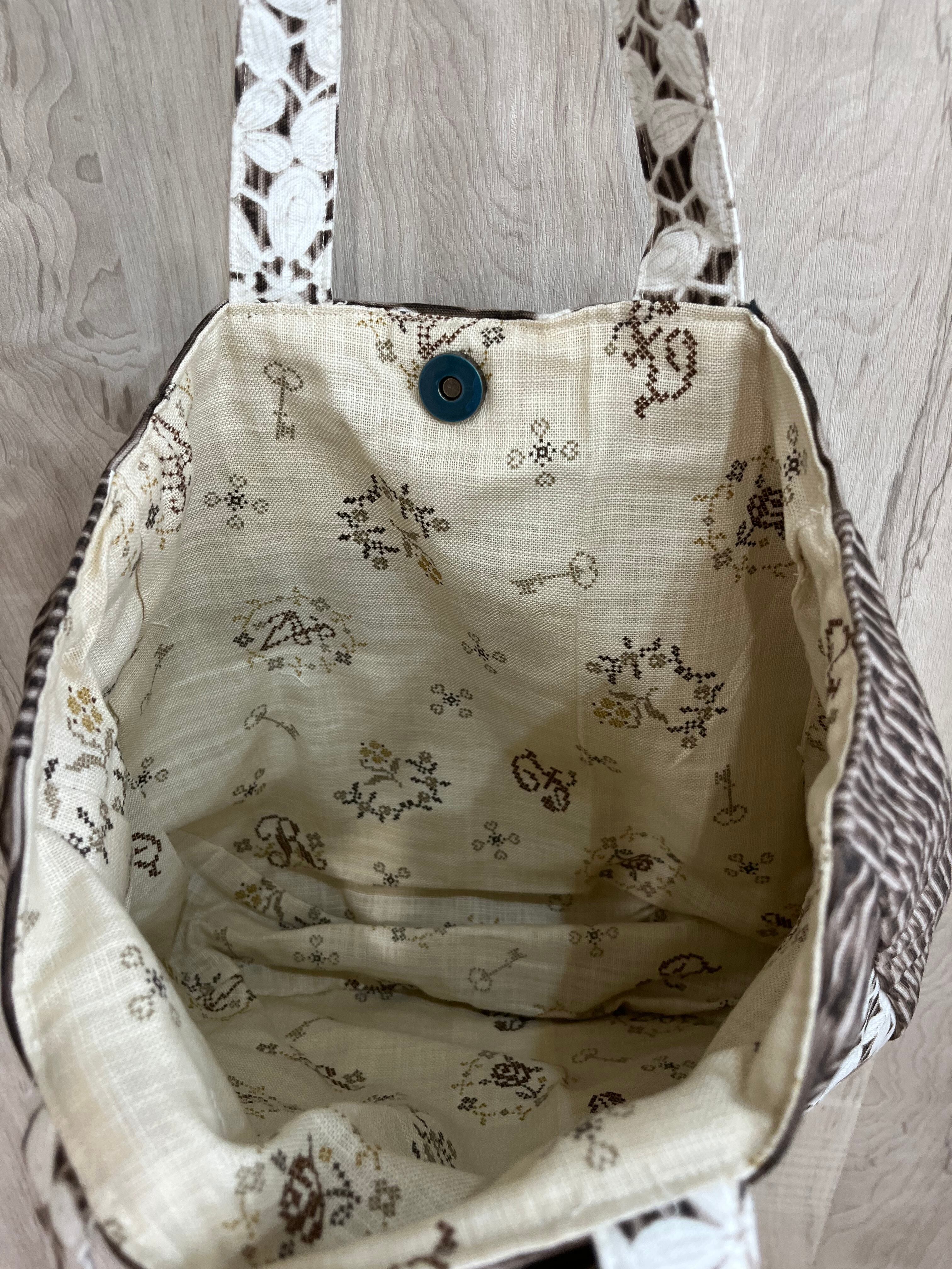 藤とレース柄の夏らしいトートバックです。